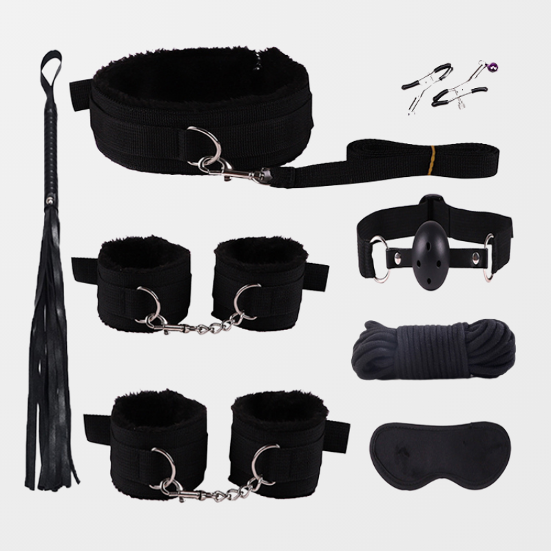 Unlock a world of intense pleasure and exquisite restraint with the Ultimate 8-Piece BDSM Beginner Set. Carefully curated for couples looking to explore their deepest fantasies, this comprehensive kit provides everything you need to transition from traditional intimacy to the thrilling world of dominance and submission. By trying out a kink in the bedroom, you and your partner get the chance to explore your sexuality together and dive into something entirely new.